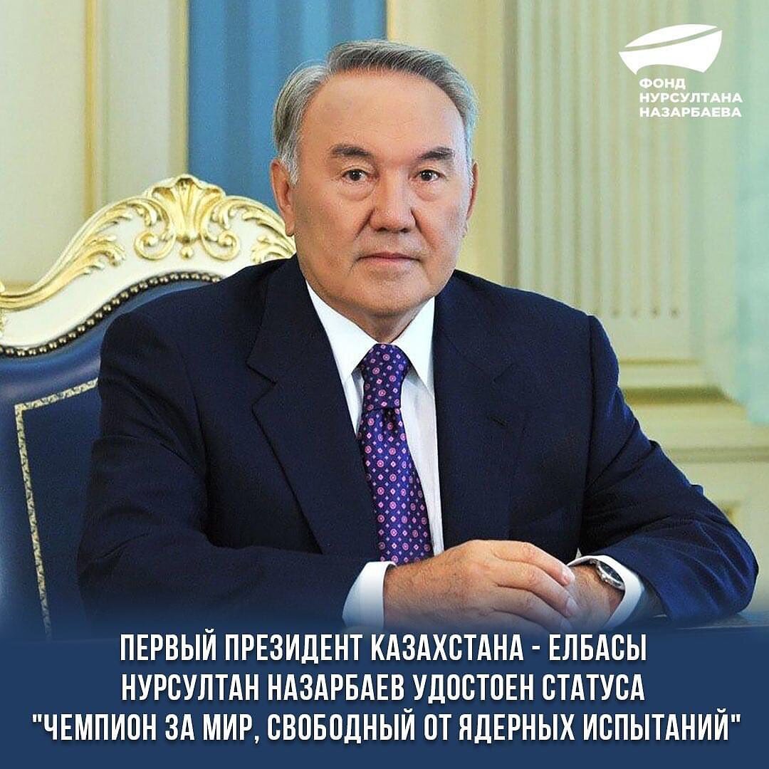 Первый Президент Казахстана-Елбасы Нурсултан Назарбаев удостоин статуса "ЧЕМПИОН ЗА МИР СВОБОДНОЙ ОТ ЯДЕРНЫХ ИСПЫТАНИЙ"
