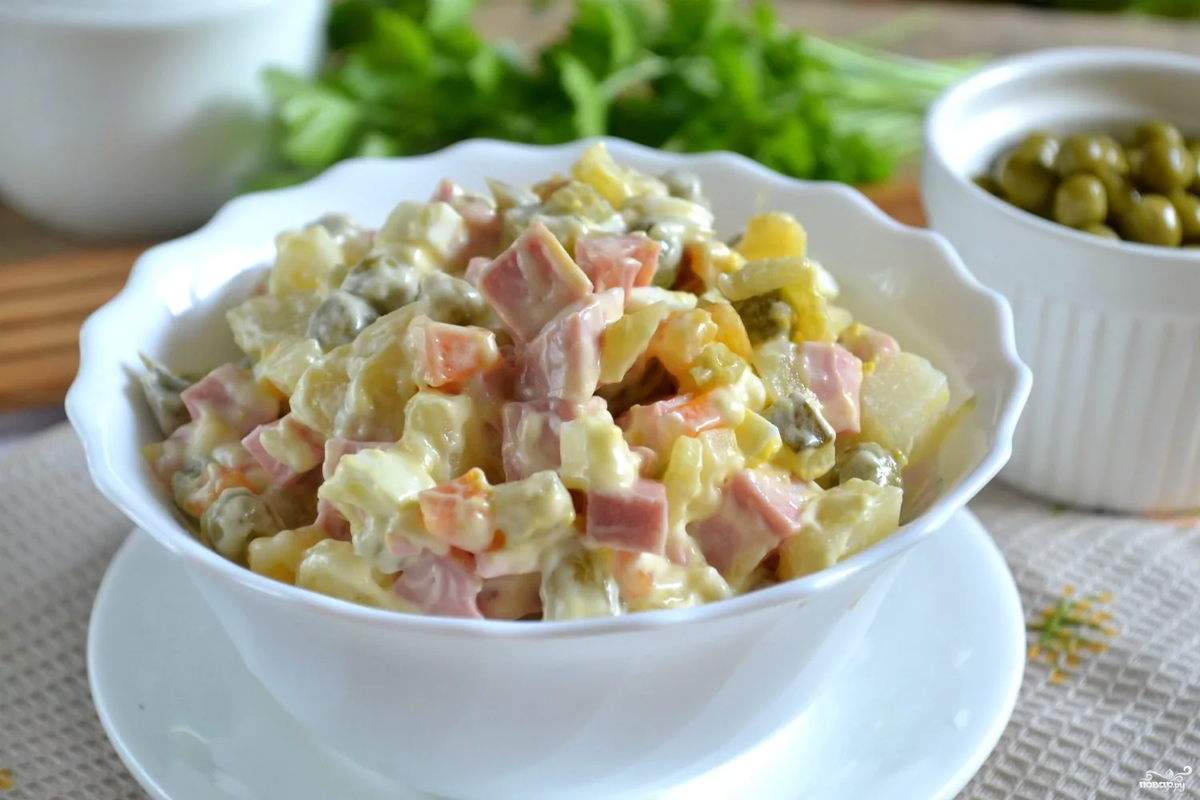 Привет. Сегодня я вам расскажу рецепт оливье. Сначала возьмите миску в которой вы будете насыпать продукты.Сначала нарежьте крабовые палочки,потом возьмите банку кукурузы и на сыпьте ее в миску. И на сыпьте крабовые палочки в миску,потом нарежьте яйца и на сыпьте их в миску и майонез и перемешайте. Пока.Hа этом всё.