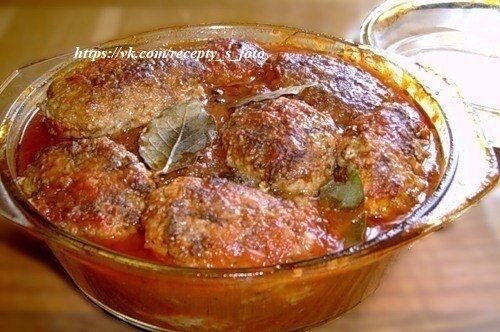 4.Укладываем в форму. Заливаем разведённой томатной пастой. Добавляем лавровый лист и перец горошком
