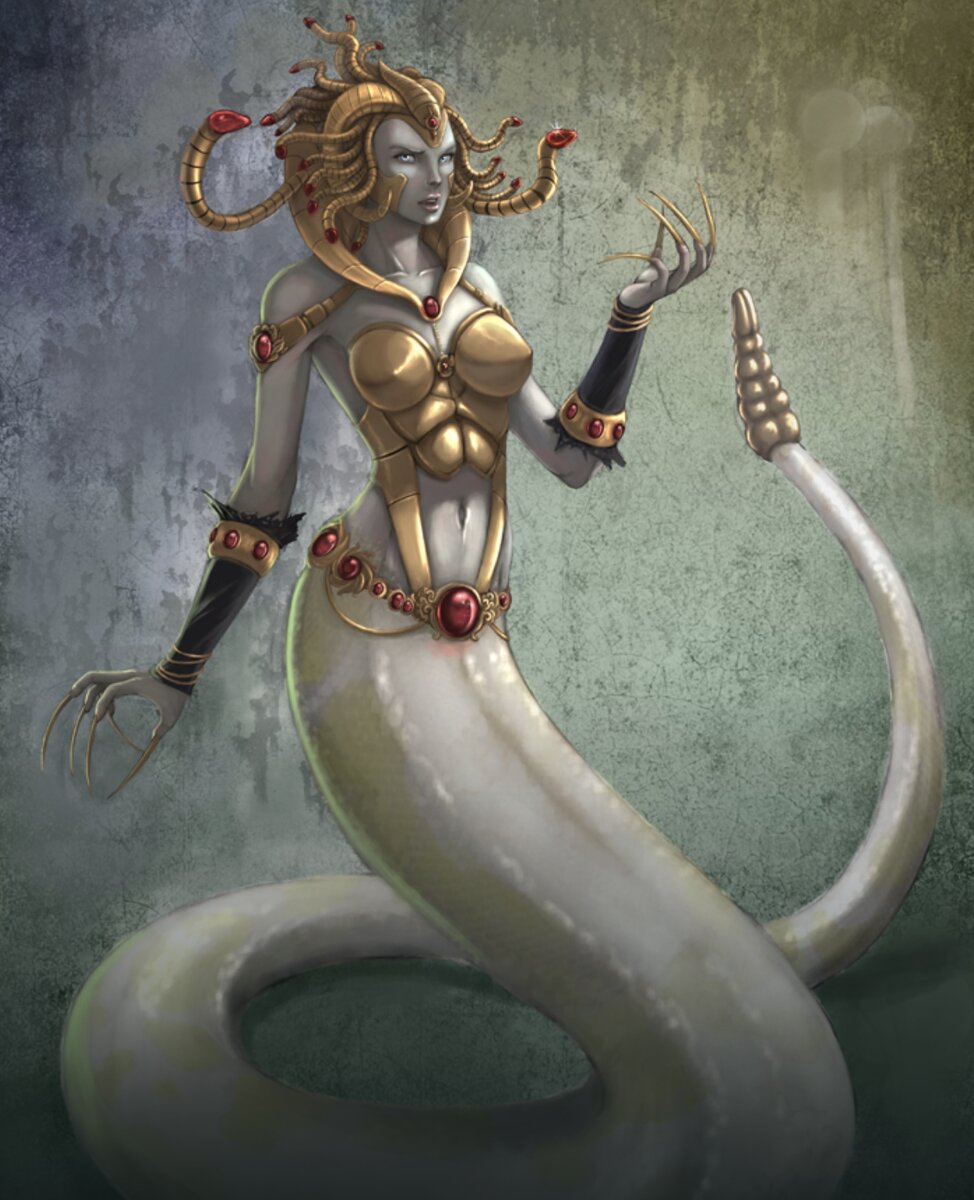 Ламия - существо, уходящее корнями в греческую мифологию. Согласно классическому греческому мифу, дочь Посейдона, Ламия, родила от Зевса Герофилу. Ламия была возлюбленной Зевса, а Гера превратила её в зверя. Когда безумствует, Ламия вынимает глаза и кладет их в чашу, чтобы заснуть; ест людей. По версии, видимо, историка Дурида, дочь Бела и Ливии, которую полюбил Зевс, а Гера лишила её разума, и она убила своих детей. Ламия была царицей Ливии, любимой Зевсом и родившей ему нескольких детей. Гера из мести превратила красоту Ламии в безобразие, а детей убила. В отчаянии Ламия стала отнимать детей у других матерей. Ламия может возвращать свою прежнюю красоту, чтобы соблазнять мужчин и пить их кровь. По другому сказанию, чудовище-Ламия, также называемое Сибарида, жило в пещере на горе Корфида, у подножия Парнаса. С грязью между ног. Её убил Еврибат из земли куретов. Она ударилась головой о выступ скалы, и там забил источник Сибарида. Поедала детей. По мнению римских и греческих классико