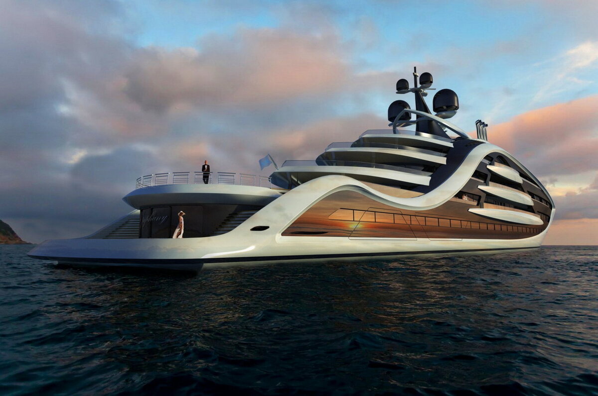 Мегаяхта была сделана по заказу российского бизнесмена Андрея Мельникова. Постройкой занималась компания Blohm & Voss, а оформлением – французский дизайнер Филипп Старк. Филипп решил радикально изменить дизайн корабля. Всем привычный пухлый корпус был заменен на новый обтекаемый силуэт. Также изменено оформление внутри судна – все каюты обиты кожей кремового цвета. Стены между комнатами передвижные, что позволяет объединить несколько маленьких в одну огромную. Опочивальня хозяина необычной лодки расположена на самом верху. Вместо обычного пола, под кроватью установлена платформа, вращающаяся на 360о, а благодаря панорамным окнам, можно любоваться прекрасным пейзажем. Яхту двигают два двигателя MAN мощность по 6500 л. с. каждый. Без дозаправки на скорости 23 узла можно проплыть 6500 миль. Такая роскошь российскому бизнесмену обошлась в 300 млн $.