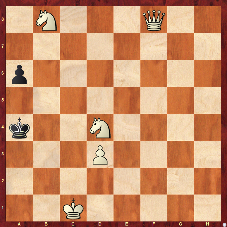 Приветствую тебя , дорогой читатель.Сегодня я хочу предоставить твоему вниманию очень интересную задачу на мат в два хода.В позиции будет ход белых.У вас есть ровно 30 секунд на то,чтобы решить эту позицию.Продемонстрируйте свою фантазию.Решение будет под картинкой. Надеюсь ,дорогой читатель , вы смогли решить эту позицию. Кd7!,этот ход дает белым победу в два хода.Теперь на Кра5 последует Фа3 мат,а на а5 последует Кb6 мат. Если вам понравилось,то ставьте лайки и подписывайтесь на меня!Также,если вам интересны разные шахматные викторины,стримы и разные обучающие видео,то переходите по ссылке https://www.youtube.com/channel/UChATxcwtI6K00yfgDia4T3Q Всем,спасибо!