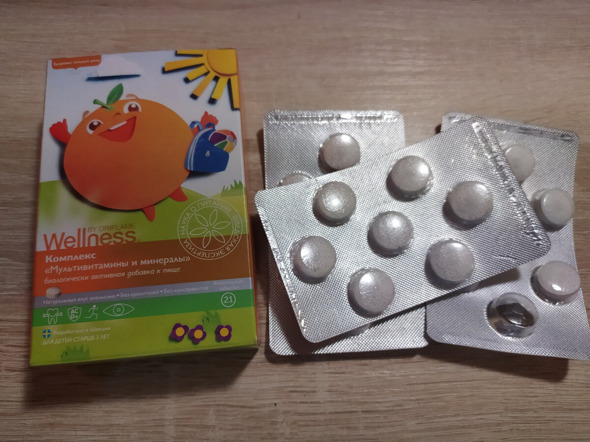 Всем доброго времени суток! Я хочу поделиться своим отзывом о самых лучших витаминах для детей о Комплексе Wellness Kids "Мультивитамины и минералы". Я купила их для старшей дочки. Сами понимаете, какое сейчас время и этот коронавирус ни как не отступает. А ведь время идти в школу. Лето, конечно, провели как положено, дочь набралась сил и энергии, но наступают будни… Так что нужно дополнительно подпитывать организм. И так, расскажу пока минимальную информацию и то, что я слышала об этих витаминах. Цена - 910 рублей. Зарегистрированным покупателям будет со скидкой. Также можно сделать подписку: три каталога подряд заказываем эти витамины, а четвертая упаковка витаминов приходит бесплатно в подарок. Я сделала именно так. В упаковке 21 жевательная таблетка. Она идёт как биологически активная добавка к пище для детей старше 3 лет. Срок годности - два года. Упаковка. Упаковка бумажная и очень красочная, детям такая упаковка нравится. На этикетке нарисованы большой оранжевый апельсинчик