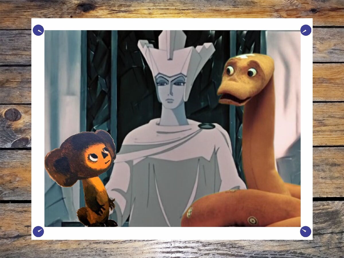 Вместо глаз филина появились детские удивлëнные глаза. От ног решили оставить только ступни. Но самое главное - уши. Сначала они планировались сверху, на макушке, потом опустились вниз, увеличились в размерах, и так появился Чебурашка.