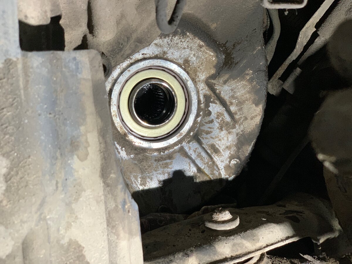 Volvo S80 с мотором 2,5т. На пробеге 255 000 км потек внешний сальник акпп. При демонтаже левого привода, выяснилось что сальник установлен неправильно.