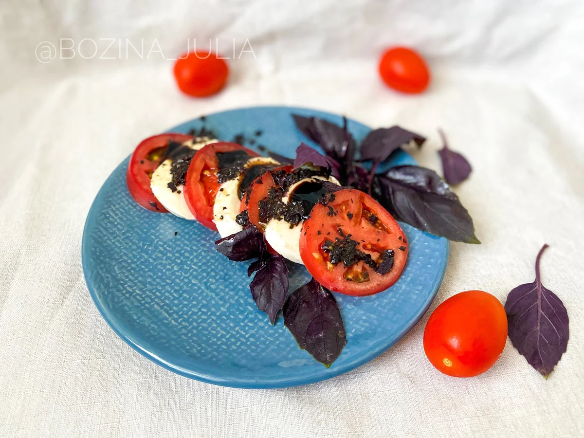 Привет, дорогие читатели и гости. Меня зовут Юля и я — кулинарный блогер. Спасибо, что вы со мной! В этом году у меня новая помидорная любовь – капрезе (если вы смотрите мои истории, то видели, что я готовлю ее на завтрак почти каждое утро). Это такая итальянская закуска из помидоров, моцареллы и базилика. Всего 3 ингредиента, а сколько вкуса! Почему, почему я раньше ее не готовила?! Посмотрите, как красиво! Я, конечно, знала об этом блюде и раньше и ела в ресторанах. Но, почему-то, распробовала только сейчас! Спасибо другу-итальянцу, что напомнил рецептик =) Как готовить Важно, чтобы помидоры были не слишком крупные, чтобы их можно было нарезать на ровные кружочки. Пожалуй, любимый сорт "бычье сердце" не подойдет для этого блюда =) Нет, заменить моцареллу здесь ничем нельзя! Фраза "сделала точно так, но с другим сыром" – преступление =) Не стоит бояться бальзамического соуса, он тоже давно продается во многих супермаркетах у дома. Бутылочка (как у меня) стоила в Перекрес