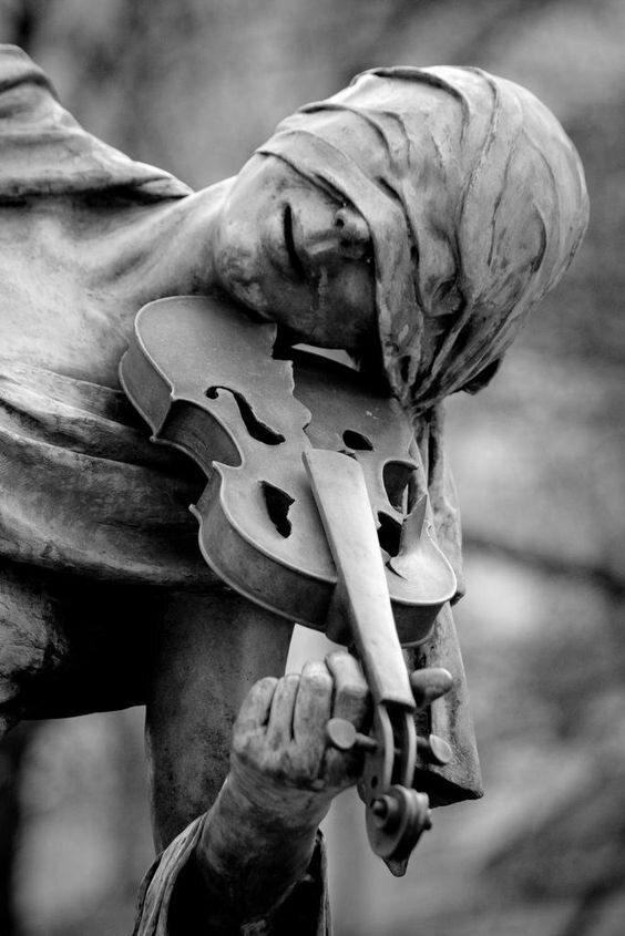 Ангел забвения играет на скрипке,Нежными звуками кутая город,Губы в мечтательной полуулыбке...Небо молчит и с игрою не спорит.Ангел спускается ниже и ниже,Гладит смычком напряжённые струны.Жизни дыхание становится тише,Спят безмятежно времени дюны.