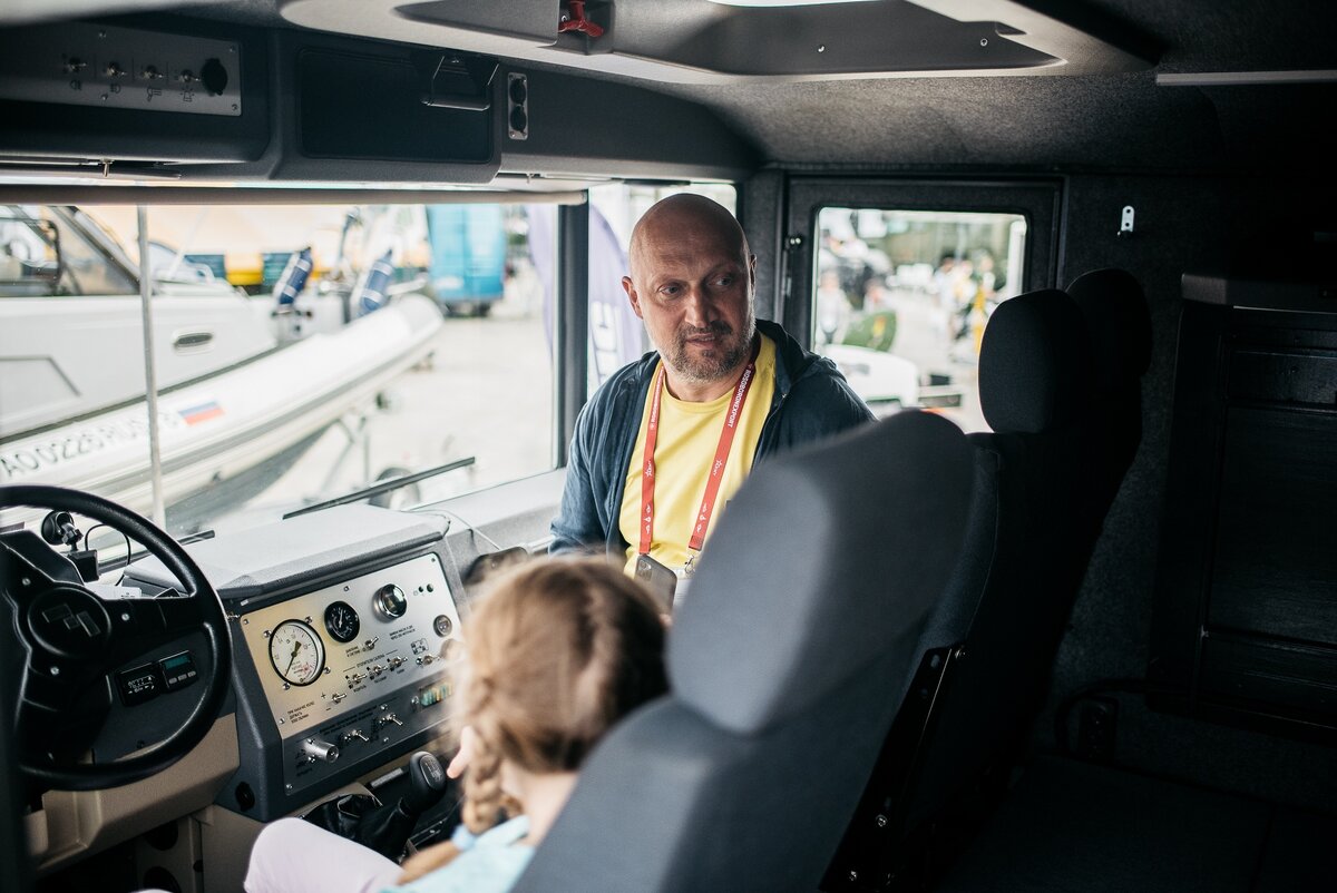 Еще заходил создатель вездехода «Шерп» Алексей Гарагашьян. Он хоть и был скромнее в оценках, однако в итоге вместе с супругой задержался на стенде почти на полчаса, внимательно осмотрел весь вездеход и лично протестировал спальные места.