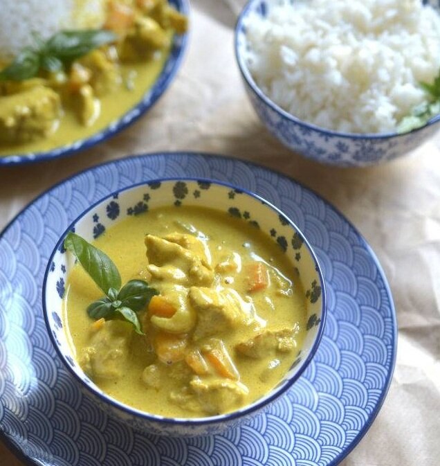 Курица в кокосовом молоке понравится всем, кто любит восточные ароматы. Сочетание кокосового молока со специями дает ароматное сочетание. На приготовление этой курицы в кокосовом молоке у вас уйдет всего 30 минут, и она определенно впечатлит вашу семью или друзей 🙂 Если вы однажды сделаете курицу в кокосовом молоке, вы вернетесь к этому рецепту, потому что это очень просто - буквально каждый может с этим справиться. Если вам нравится этот рецепт, попробуйте еще и Курицу в соусе карри, она такая же вкусная! Приятного аппетита! Количество порций: 2 Время приготовления: 30 минут. ИНГРЕДИЕНТЫ РЕЦЕПТ БЛЮДА 1. Нарезать куриную грудку кубиками. Очистите морковь и нарежьте дольками, а лук нарежьте перьями. Чеснок мелко порубить. 2. Нагрейте масло в большой сковороде / воке, добавьте морковь, лук и чеснок и обжарьте до прозрачности. 3. Затем к обжаренным ингредиентам добавить специи: перец, куркуму и чили, перемешать и добавить курицу, обжарить на сильном огне 5 минут. 4. Залить кокосов