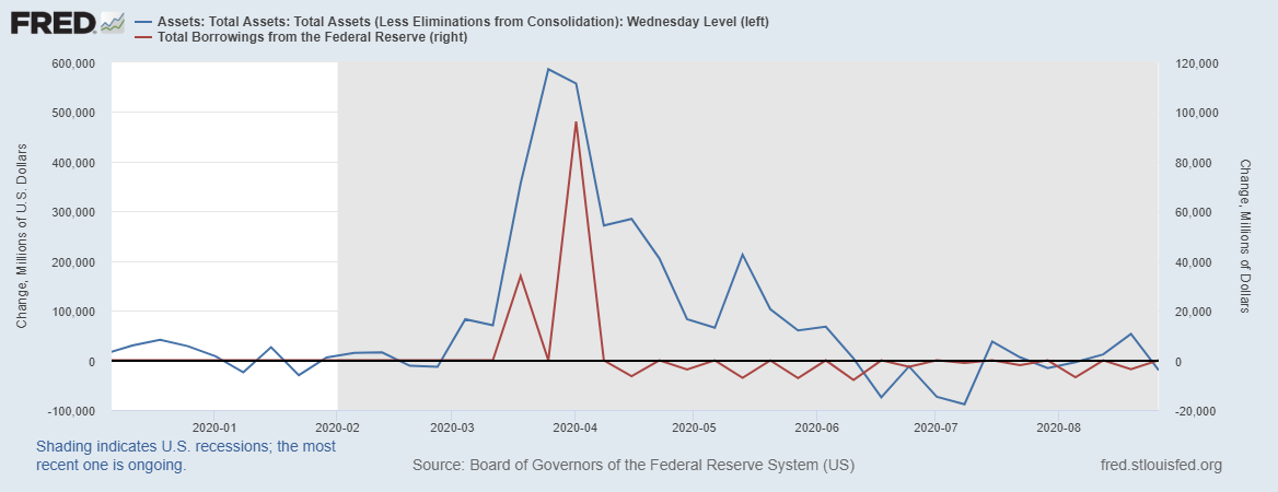 Начнем с обзоры баланса ФРС и динамики прямого кредитования ФРС