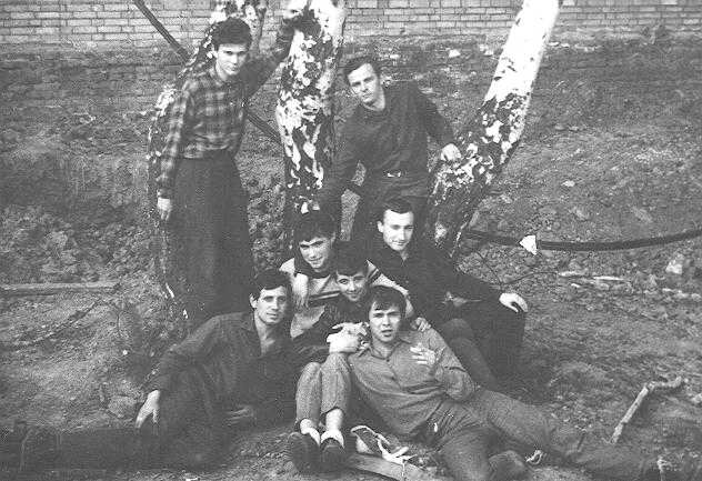 Нас, группу студентов первого курса направили на помощь строителям плавательного бассейна. Надо заметить, что группы были в количественном отношении небольшими. От силы 8 -10 человек. Так что на фото представлена почти вся группа. И тот, кто снимал, Виктор, тоже из этой же группы.