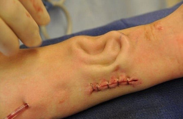 Ученые и врачи смогли вырастить ухо на руке женщины, которая потеряла его из-за рака, и подарить ей новый функционирующий орган. В 2008 году Шерри Уолтерс (Sherrie Walters), 42-летней американке поставили диагноз базально-клеточный рак кожи. Женщина прошла интенсивный курс лечения от разрушающей болезни. Ей удалили ухо, часть черепа и левый слуховой канал. И хотя Уолтерс осталась без уха, она могла слышать с помощью специального слухового аппарата. Но врачи из больницы Джона Хопкинса в Балтиморе предложили ей новое постоянное ухо — которое они вырастят из ее собственных тканей. Специалисты использовали хрящ ребра женщины, чтобы сформировать новое ухо, которое затем поместили под кожу предплечья. Врачи хирургическим путем закрепили ухо и кровеносные сосуды, а недавно уху придали форму и детали. В большинстве случаев для восстановления уха используется кожа лица и шеи, но так как в ходе лечения от рака у данной больной большая часть кожи была удалена из этих областей, врачи поместили
