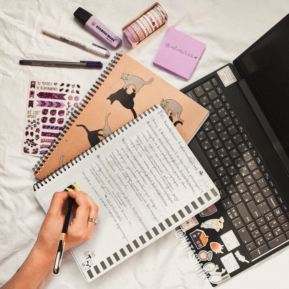 Многие ученики сталкиваются с такой проблемой, что написание конспектов отнимает у них слишком много времени. Особенно, если они стараются делать их эстетичными и приятными для глаз. За несколько лет ведения красивых записей, у меня накопилось несколько советов для всех, кто хочет писать конспекты быстро, но при этом качественно.