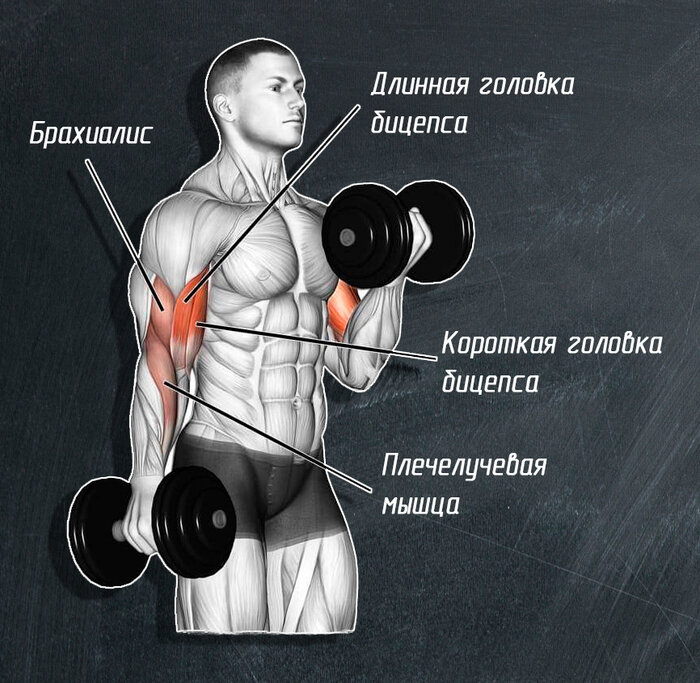 Почти каждый мужчина мечтал о крупном бицепсе. Но сколько бы он не тренировал эту пресловутую мышцу, результат не соответствовал ожиданиям. Все дело заключается в том, что тренировка бицепса у многих представляет собой несколько подходов классического поднятия штанги на бицепс или поднятия штанги на скамье Скотта. Да, безусловно эти упражнения очень полезны,но они не могут прокачать мышцу, которая и задает 70% объема. Эта мышца называется брахиалис. Брахиалис — плечевая мышца, которая сгибает предплечье. Расположена как подкладка под бицепсом. При этом она не участвует в процессе разворота кисти, потому что крепится ровно по кости, а не сбоку как бицепс. Если вы качаете руки, забывая про брахиалис, то мышца бицепса, увеличиваясь в объеме, проседает вниз, поэтому руки визуально не меняются. Но, выполняя всего два упражнения, которые прокачают брахиалис, вы достигните хороших результатов. Сразу оговорюсь, что про обычные упражнения на бицепс не забываем!!! Подъем штанги обратным хватом