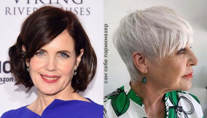 В то время, как одни дамы предпочли милые элегантные стрижки, были и другие короткие прически, которые отлично смотрелись на пожилых женщинах. Например, короткий многослойный образ со слегка растрепанными кудрями. Если у вас от природы вьющиеся волосы, то такая стрижка – отличное решение. Она не требует особых усилий, волосы отлично укладываются при помощи специальных стайлинговых средств.