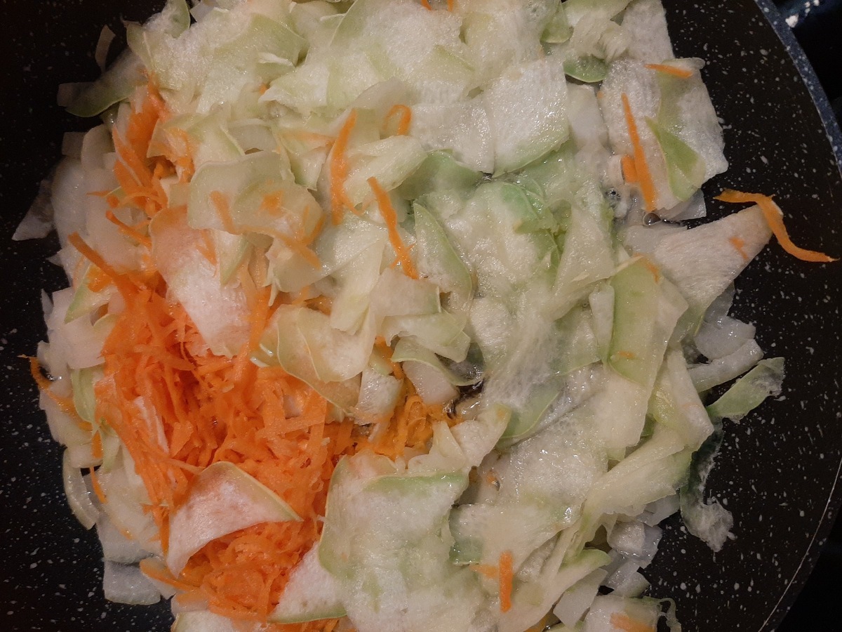 Оригинальное сочетание всеми любимой курицы и кабачка. Получается остренько и сочно. Делаем особую начинку для куриных грудок. Состав: Куриные грудки 2 шт Яйцо куриное - 1 шт Мука - 100 гр Кабачок - 1/4 часть от большого кабачка Морковь - 1/2 средней моркови луковица - 1 средняя шт Соль, перец - по вкусу Растительное масло - 2 столовые ложки Сыр - 50 граммов Чеснок - 2 зубчика Приготовление: В сковороде с толстым дном обжариваем лук, морковь и #кабачок. Тонкие срезы полосок кабачка делаем на широкой части тёрки (получаются тонкие листовые срезы) Обжариваем на большом огне до полуготовности. #Овощи станут золотистыми. Отдельно занимаемся #курицей. #Куриные грудки помыть, отбить и обжарить на сковороде. Посолим и поперчим куриное мясо по вкусу. Сначала их обваляем в муке, затем поместим во взбитое вилкой яйцо, затем снова обваливаем в муке. Обжаренные куриные грудки сложить в форму для запекания. Сверху выложить обжаренные овощи. Сверху посолить и поперчить. Натереть на тёрке сыр и че
