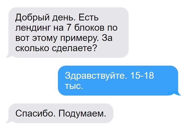 Воды, в принципе, в сети и так достаточно. А вот отыскать поистине полезный пост - задача не из легких. В общем, поехали. Скажи "Нет" шаблонам. Все привыкли работать по скриптам. Стандартный выглядит примерно так: И на этой «оптимистичной» ноте ВСЁ. Ни клиент, ни исполнитель не заинтересован. И да. Это не клиент плохой, это исполнитель не смог зацепить и продать. Что в этом случае советую я? Смягчить первое знакомство. Всё просто. Человек не знает, какое качество твоей работы, сроки её выполнения. Отзывы мог не прочитать. И он боится. Боится потерять деньги, доверить проект дилетанту, не затащить по срокам. При этих условиях тебе нужно: Обычно этот процесс занимает много времени, которого у нас нет. Игра становится еще интереснее. И здесь на помощь придет маленькая уловка. Лови суть. Не стесняйся. Задавай вопросы по проекту. Уточняй дедлайны. Покажи, что погрузился в задачу. Готово. Как думаешь, сколько клиентов согласиться на такое предложение? Я знаю, что 8 из 10. Я перепро