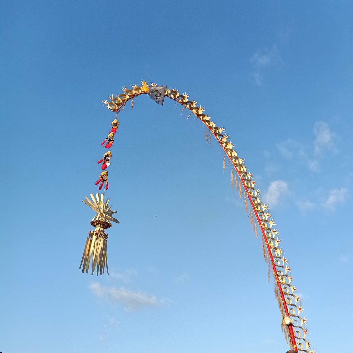 Это бамбуковый шест, который наряжают всей семьёй. Украшениями служат все те же пальмовые листья, рисовые колосья, бумажки, флажки, фрукты... Один раз я даже видела пенджор с подсветкой из ёлочных фонариков🎄