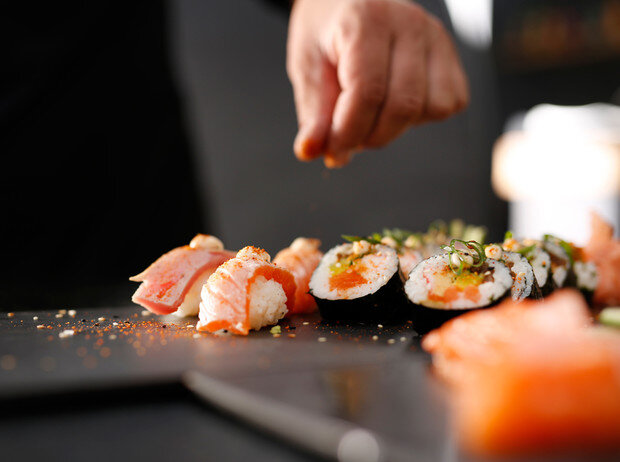 Домашняя версия популярного блюда для авторского исполнения. Роллы, приготовленные дома, имеют, как минимум, один неоспоримый плюс даже при не самом идеальном внешнем виде ─ вы точно знаете, что и в какой степени свежести туда положили. Для рецептов концепт-шефа ресторана японской кухни «Макото» Федора Слуцкого прежде всего понадобятся рыба (слабосоленые лосось и тунец, копченый угорь), творожный сыр (аналог знаменитой филадельфии) ─ например, Cremette от Hochland и рис для суши. Первый шаг ─ правильно приготовить именно рис. Промываем зерна до тех пор, пока вода не станет прозрачной, заливаем водой в соотношении 1 стакан риса на 1,5 стакана воды и варим 10-15 минут (на минимальном огне и при закрытой крышке после закипания), после чего даем постоять еще минут 10. В это время готовим соус: 1/2 ст. л. сахара смешиваем с 1/2 ст. л. соли и заливаем 50 мл рисового уксуса, ставим на маленький огонь, непрерывно помешивая. Снимаем с плиты, когда соль с сахаром растворятся полностью. Рас