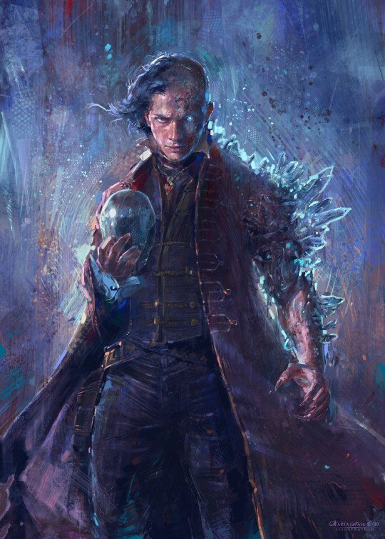 Они вышли в гостиную, мебели здесь вообще не было, за исключением деревянной тумбы, на которой на мягкой подушке лежал камень Неверуга. Его хозяин был неподалёку — чуть в стороне висел в воздухе ярко-синий призрак. Как и Солифилесет, он очеловечился и выглядел как худой пожилой мужчина с острыми скулами и цепким взглядом. В его взгляде чувствовалась тоска и разочарование.
