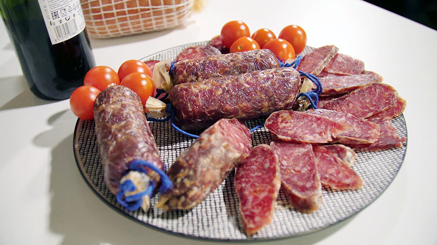 - в любой проницаемой оболочке (натуральная, коллагеновая, фиброузная, целлюлозная). Вяление в проницаемой оболочке должно проходить при строгом соблюдении влажности в диапазоне 82…75 % и при температуре не +8…+10 град. Идеальными будут условия вяления в климаткамере, где есть конвекция воздуха с заданной скоростью 0,1…0,5 м/сек. Во избежание роста плесени. Для профилактики роста нежелательной патогенной плесени лучше обработать поверхность батона раствором Натамицина (можно замочить оболочку перед набивкой).