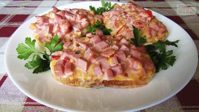 Нам понадобится ПРИГОТОВЛЕНИЕ Нужно включить духовку так как начинка готовится быстро и нагреть до 180 градусов. Можно использовать не только ветчину, но и сосиски либо колбасу . Нарезаем батон, ветчину и помидоры режим мелким кубиком, сыр нужно натереть на терке ,а чеснок можно на тереть на мелкой терки либо пропустить через пресс. Все что у нас получилось выкладываем в глубокою чашку. Добавляем майонез можно заменить сметаной . Перемешиваем На противень лучше постелить пергаментную бумагу. Выкладываем начинку на батон . Ставим противень в за ранее прогретую духовку ждем от 7 до 10 мин, после чего достаем и употребляем в горячем виде. Приятного аппетита!