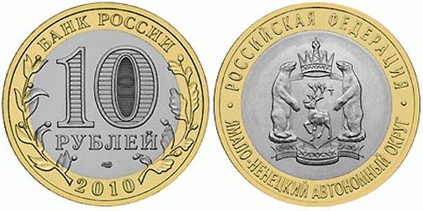 10-рублёвая монета «Ямало-Ненецкий автономный округ» Монета появилась в 2010 году, именно тогда было выпущено крайне много юбилейных монет с различными областями, округами, республиками и так далее. Была выпущена в ограниченном тираже, оттого стоимость за экземпляр составляет 16 тыс. рублей. 10-рублёвая монета «Чеченская Республика» Так же, как и предыдущая монета, поступила в оборот в 2010 году в ограниченном тираже. Стоимость за экземпляр на данный момент достигает 8500 рублей. 10-рублёвая монета «Политрук» Монета была выпущена в честь 55-летия победы в Великой Отечественной войне, однако её стоимость является смешной — 310 рублей за штуку. 10-рублёвая монета «Республика Северная Осетия — Алания» Была отчеканена и выпущена уже в 2013-м году. Её приблизительная стоимость на рынке составляет около 3500 рублей. 10-рублёвая монета «Гагарин» Отчеканена и выпущена к 40-летию со дня полёта первого человека в космос. Стоимость монеты на данный момент достигает 300 рублей. Есл