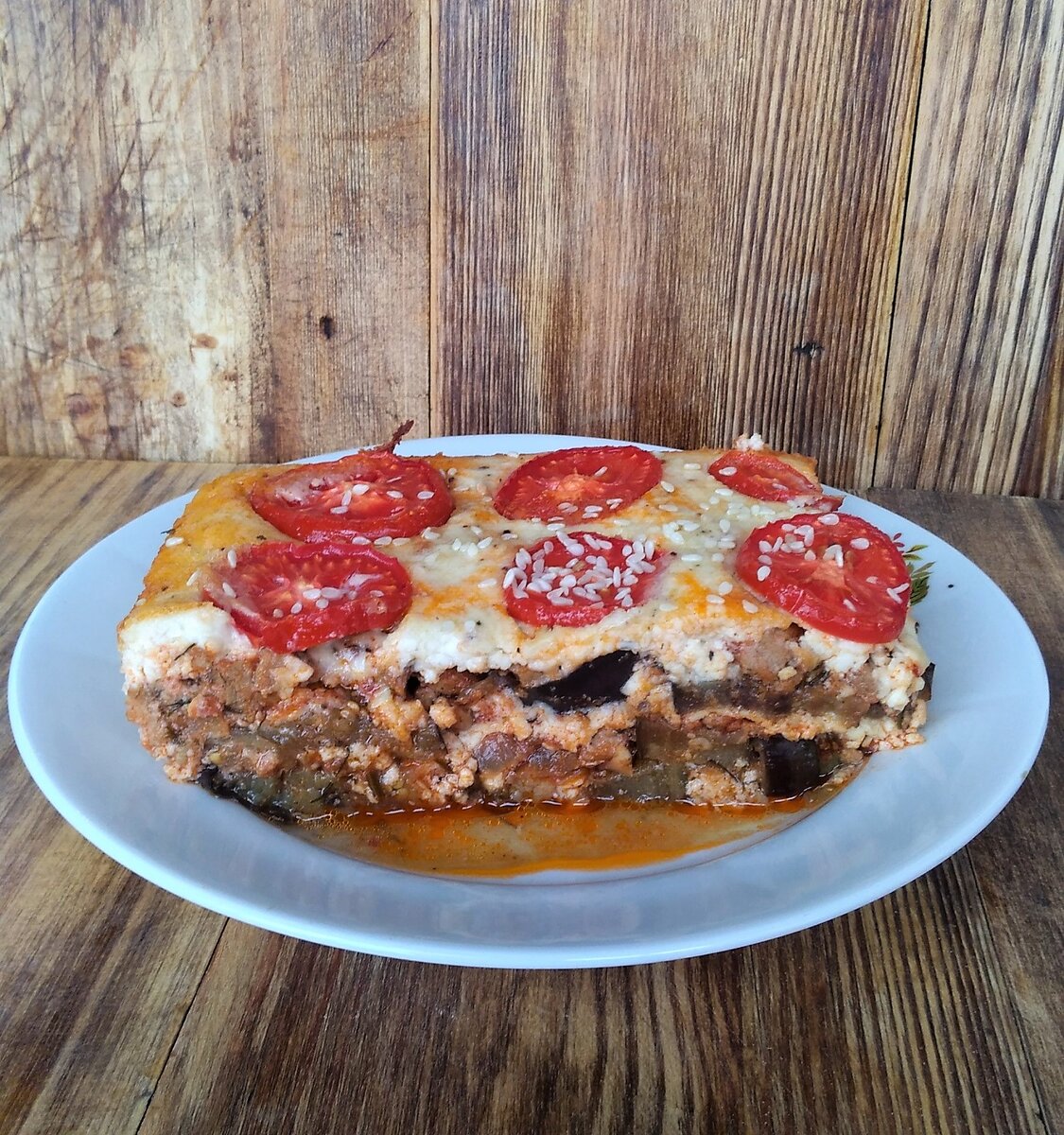 И вот что в итоге мы приготовили - умопомрачительная кето-мусака! Сверху можно посыпать кунжутом или молотым семенем льна.