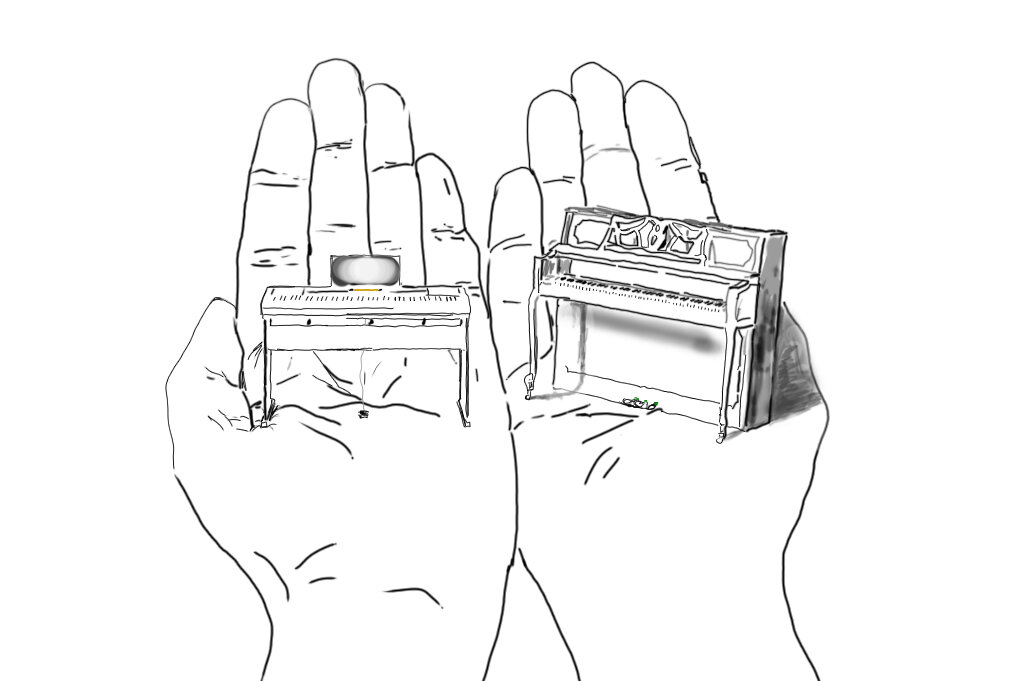 Я не смог пройти мимо этой темы ещё и потому, что не только дипломированный преподаватель музыкально-теоретических дисциплин с солидным стажем, но и игра на фортепиано не обошла меня стороной. Вся моя музыкальная практика с раннего детства происходила в неотрывном взаимодействии с пианино, роялями, синтезаторами-ромплерами, цифровыми пианино и другими клавишными инструментами и приборами. Поэтому ещё с юности ко мне то и дело обращаются с вопросом "как выбрать, посоветуй!" или "стоит ли покупать цифровое пианино для ребёнка?"