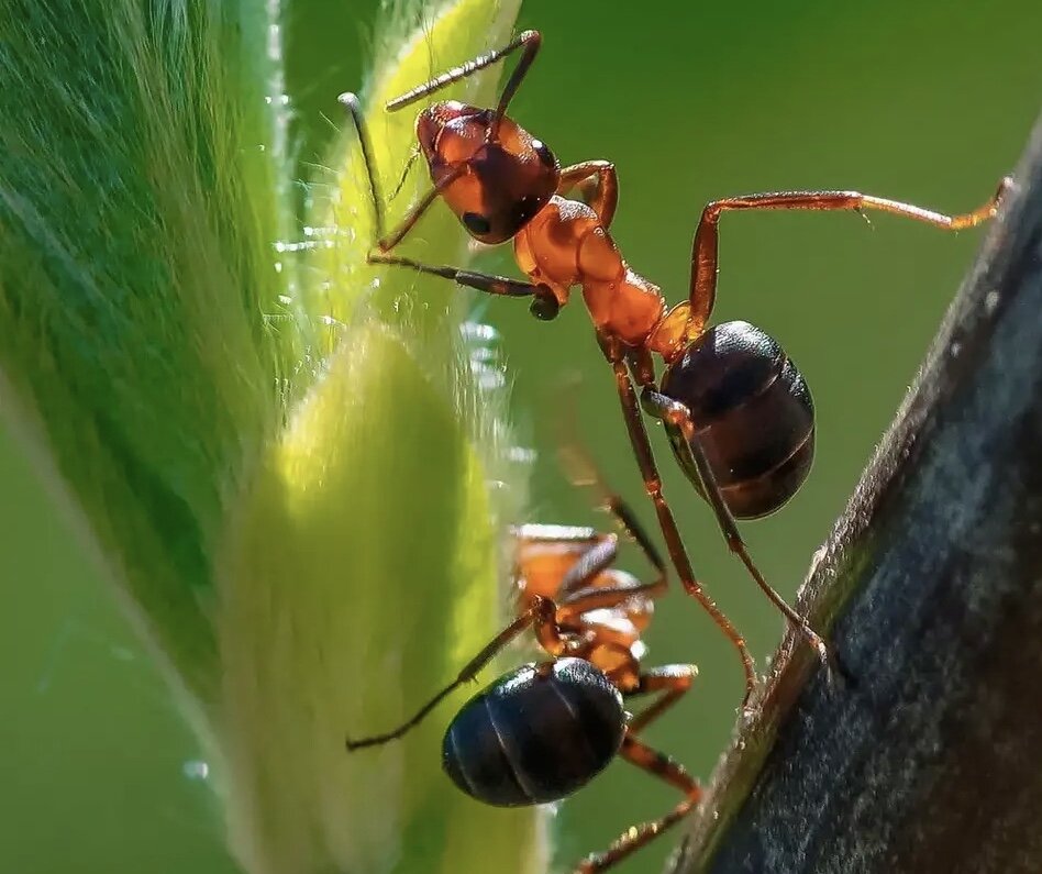 Наряду с пчелами муравьи являются самыми высокоорганизованными насекомыми. Они живут большими сообществами, где у каждого муравья - своя роль и свои обязанности: одни добывают пищу, другие заботятся о личинках, третьи охраняют муравейник. В муравейнике есть всего одна самка - царица, которая гораздо больше остальных муравьев и занимается только тем, что откладывает яйца, из которых вылупляется муравьиное потомство.