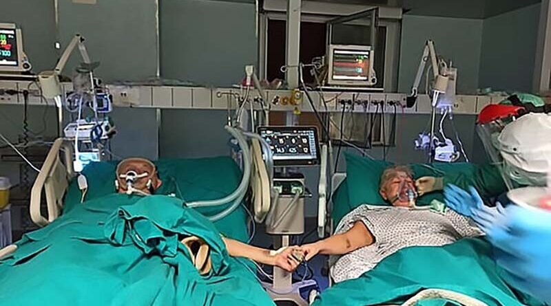 История этой итальянской пожилой пары еще раз доказывает, что о любви не стоит забывать даже лежа на больничной койке. 71-летняя Сандра вместе с 73-летним супругом Джанкарло попали в реанимацию незадолго до своей золотой свадьбы. У супругов был выявлен коронавирус. Их обоих в тяжелом состоянии доставили больницу Мурри, находящуюся в муниципалитете Фермо, и сразу подключили к аппаратам ИВЛ. Одного раза медсестра Роберта Ферретти узнала от Сандры, что на днях у них с мужем будет важное для них событие – 50-летняя годовщина свадьбы. Пациентка очень сильно переживала, что не сможет отметить этот праздник с любимым мужем. Роберта рассказала своим коллегам об этом, и медики решили своеобразно поздравить двух влюбленных с торжеством. Они поместили мужа с женой в одну палату, купили два небольших пирожных и поставили в них свечки с цифрой 50. В момент поздравления рядом с супругами находились врачи и медсестры, облаченные в защитные костюмы. Они исполнили для влюбленных марш Мендельсона, и к