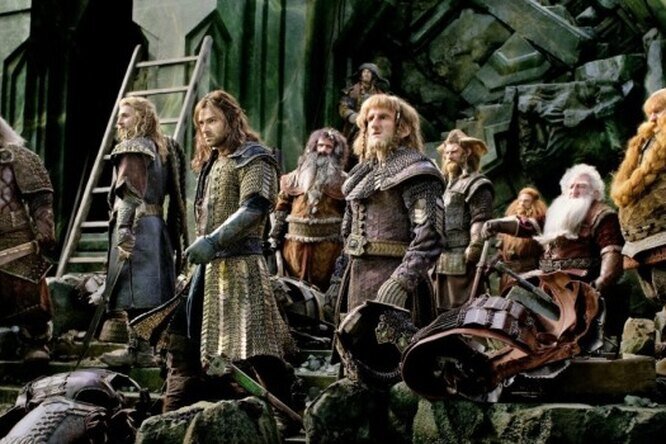 Лучник Бард точно попадает стрелой в место, не прикрытое броней, и побеждает дракона. Он становится героем и надеется, что Торин всем поможет, ведь он дал слово. Кили и несколько гномов, оставшихся в Озерном городке едут к друзьям. Кили оставляет Тауриэль камень с рунами. Тем временем, Торин заставляет всех найти камень Аркестрона и предупреждает, что жестоко отомстит, если узнает, что кто-то укрывает камень. Бильбо беспокоится за него и тщательно прячет камень, который он нашел. Торин узнает, что жители Озерного города пришли в Дейл. Торин ведет всех туда. Туда же приезжают и эльфы. Гендальф находится в плену и его хотят у.бить. Ему спасает жизнь леди Галадриэль и на них нападают незгулы. Их спасают Саруман и Элдронд. Гэндальфа увозит Радагаст к себе домой. От него Гэндальф мчится в Эребор. Орки планируют нападение на город. Торин не хочет делиться сокровищами и настраивает Барда и короля эльфов на войну. Хоббит и подоспевший Гэндальф пытаются предотвратить войну. Бильбо пытается