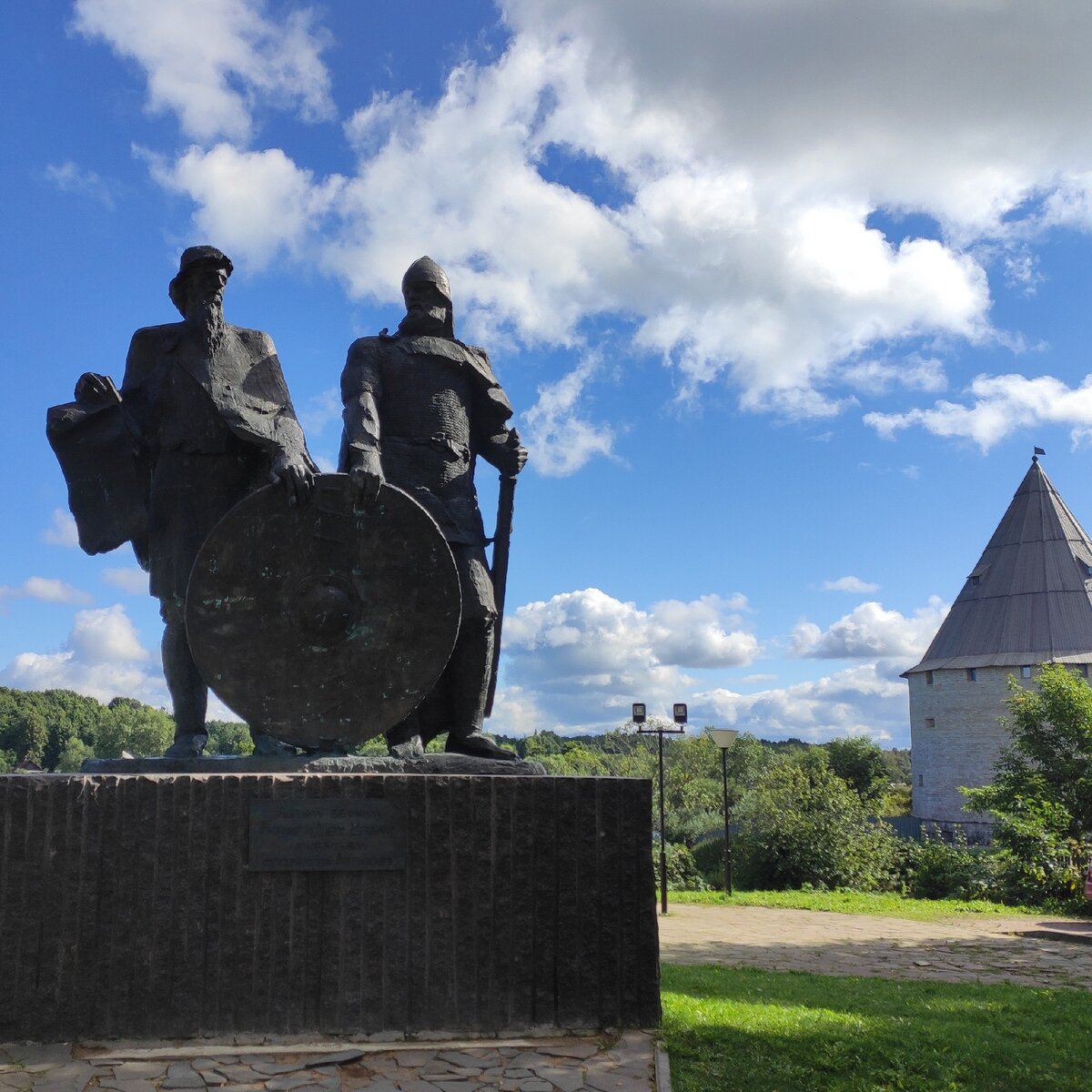 Первым пунктом нашей программы будет памятник памятник великим русским князьям Рюрику и Вещему Олегу. Памятник поставлен не так давно, всего лишь пять лет назад.