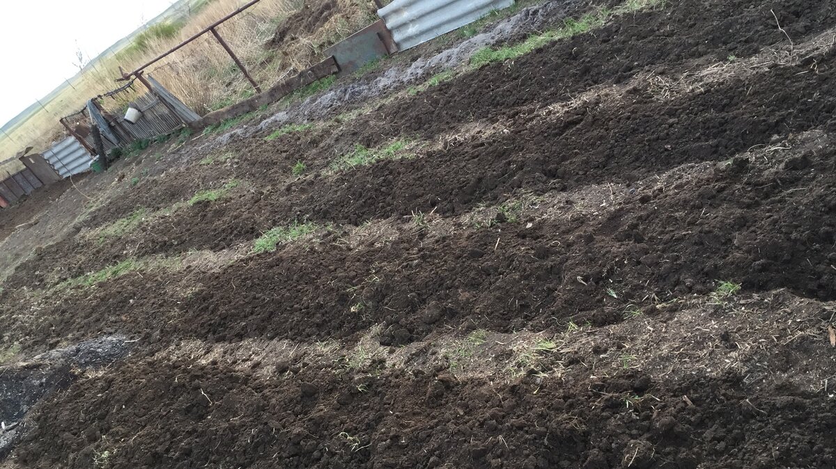 Возле дома купленного в марте, был запущенный участок. Океан бурьяна и мусора: начиная от бутылок битых до старых сгнивших деревянных частей сарая ранее стоявшего здесь Земля была утрамбована тракторами которые частенько там катались. А навоз который вкупе с суглинистой почвой дал эффект очень хорошего цемента, прежде всех землекопательных работ установил забор из камней и палок, шутка из частей старого забора, кроватей панцирных, листов ржавой жести и обломков водопроводных труб И большого мотка колючей проволоки купленной у доблестных стражей наших границ, благо живем в пограничье Лопаты купленные в строительной магазине, не выдерживали нагрузок и выходили из строя, пришлось поменять четыре полотна, прежде на мое счастье не обнаружилась находка в виде старой советской лопаты которая послужит и после меня Благодаря упорному труду и моим помощникам сделал четыре грядки потратив много сил, однако результаты меня одухотворили А вот мои помощники: мама которая поддерживает все мои фан