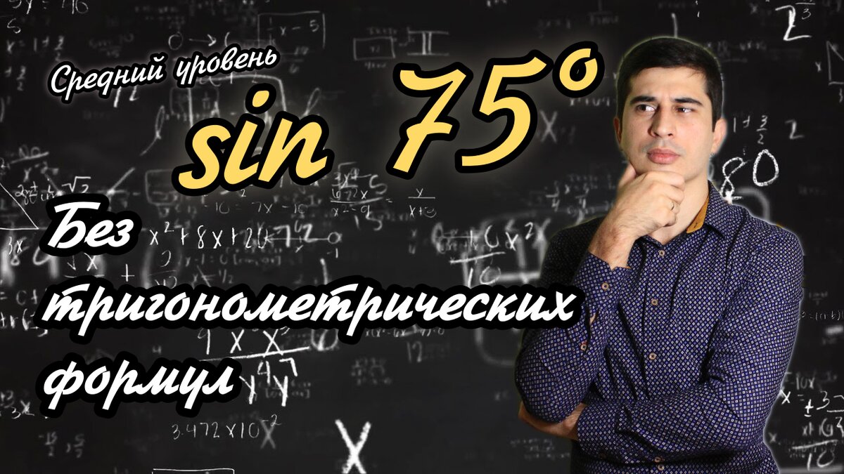 Нужно вычислить синус 75° без использования тригонометрических формул. Задача будет очень полезной тем, кто готовится к экзаменам. Особенно для ЕГЭ профильного уровня.