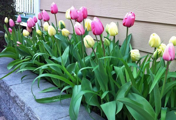 Тюльпаны прекрасно выглядят "семьями", где представлены все возраста - в центре располагайте самые высокие разновидности, а по бокам - поменьше. Тогда взрослые особи не помешают малышам развиваться.