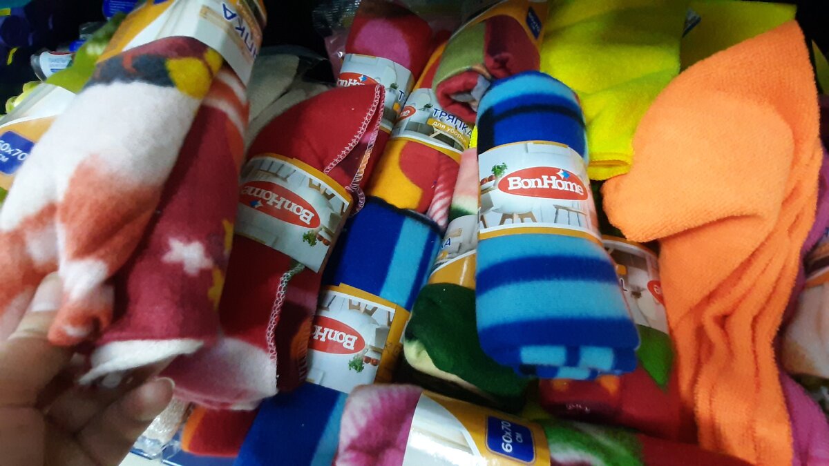 Новые яркие тряпочки для уборки появились на полочках Фикс Прайса. Они неплохо впитывают влагу. Размер 60х70 см.