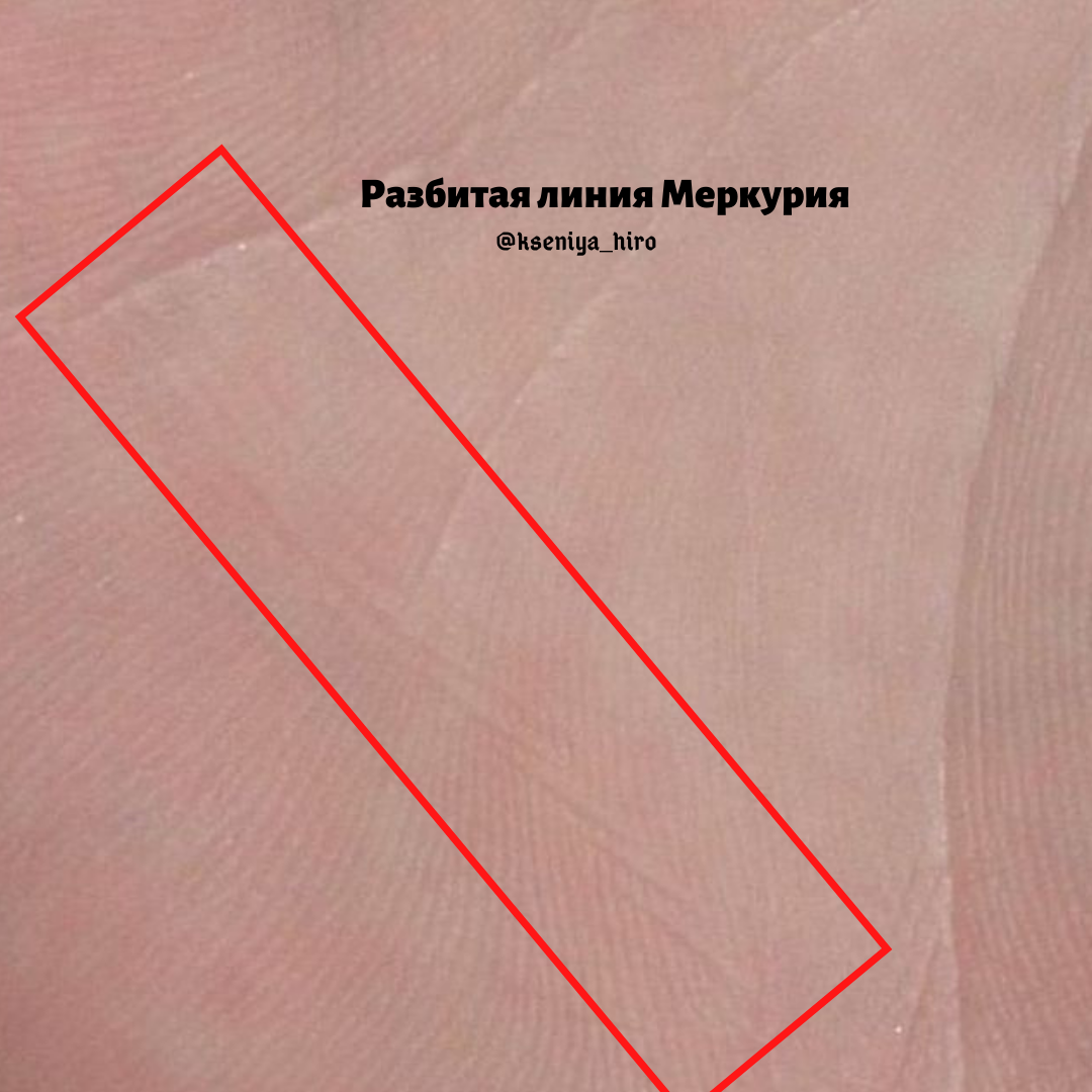 Для начала посмотрим, как выглядит разбитая линия Меркурия на руке: