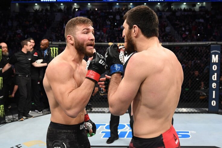 Вопрос с реваншем между Магомедом Анкалаевым и Ионом Куцелабой будет решён в октагоне. Так считают в UFC. Напомним, что сегодня на турнире UFC Fight Night 175 должна была состояться вторая часть дагестано-молдавского противостояния, однако Куцелаба показал положительный тест на COVID-19, и бой был отменён. «Бой перенесён на более поздний срок», – заверяют российские СМИ в команде Куцелабы. Напомним, что по этой же причине бойцы не смогли выйти в клетку 15 августа на турнире UFC 252. А 18 апреля их реванш был отменён из-за того, что турнир UFC 249 не состоялся в срок в связи пандемией COVID-19. Анкалаев и Куцелаба дрались ещё до всеобщего карантина. 29 февраля на турнире UFC Fight Night 169 Анкалаев победил соперника техническим нокаутом за 38 секунд, однако решение рефери остановить поединок вызвало массу критики не только со стороны Куцелабы, но и со стороны незаангажованных болельщиков. Вам понравится: Подписывайтесь на наш канал в Яндекс.Дзене!