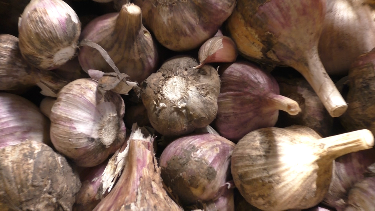 Озимый чеснок высаживается 18-25 сентября. Высаживать нужно периферические зубчики, а граненные, центральные, пускать на еду. Если ваш чеснок портится, нужно предупредить гнили, для этого посадочный материал чеснока выдерживают 1-2 минуты в растворе: 1 ст.л. соли на 2 литра воды, промывают, на минуту опускают в раствор медного купороса: на 5 литров воды половину чайной ложки медного купороса. При посадке хорошо использовать золу, а минеральные удобрения не следует. Чеснок после посадки мульчируется толстым слоем соломы либо перегноя. Есть мнение, что чеснок нужно обновлять бульбочками, и высаживать их ежегодно, весной или осенью.