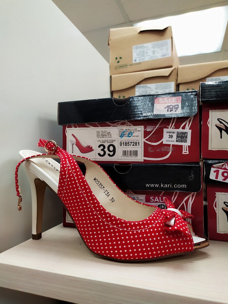Продолжая с моей подругой знакомиться с ассортиментом магазина обуви KARI, мы зашли в самые потаённые уголки торгового зала. И нашли даже такие модели, о которых мечтали наши бабушки, а о цене я вообще молчу, отдают практически бесплатно. И всё , что я не возьму в руки , почему-то подруге не нравится и она постоянно кривит свою физиономию и говорит, уже осень и забудь о босоножках. Лучше