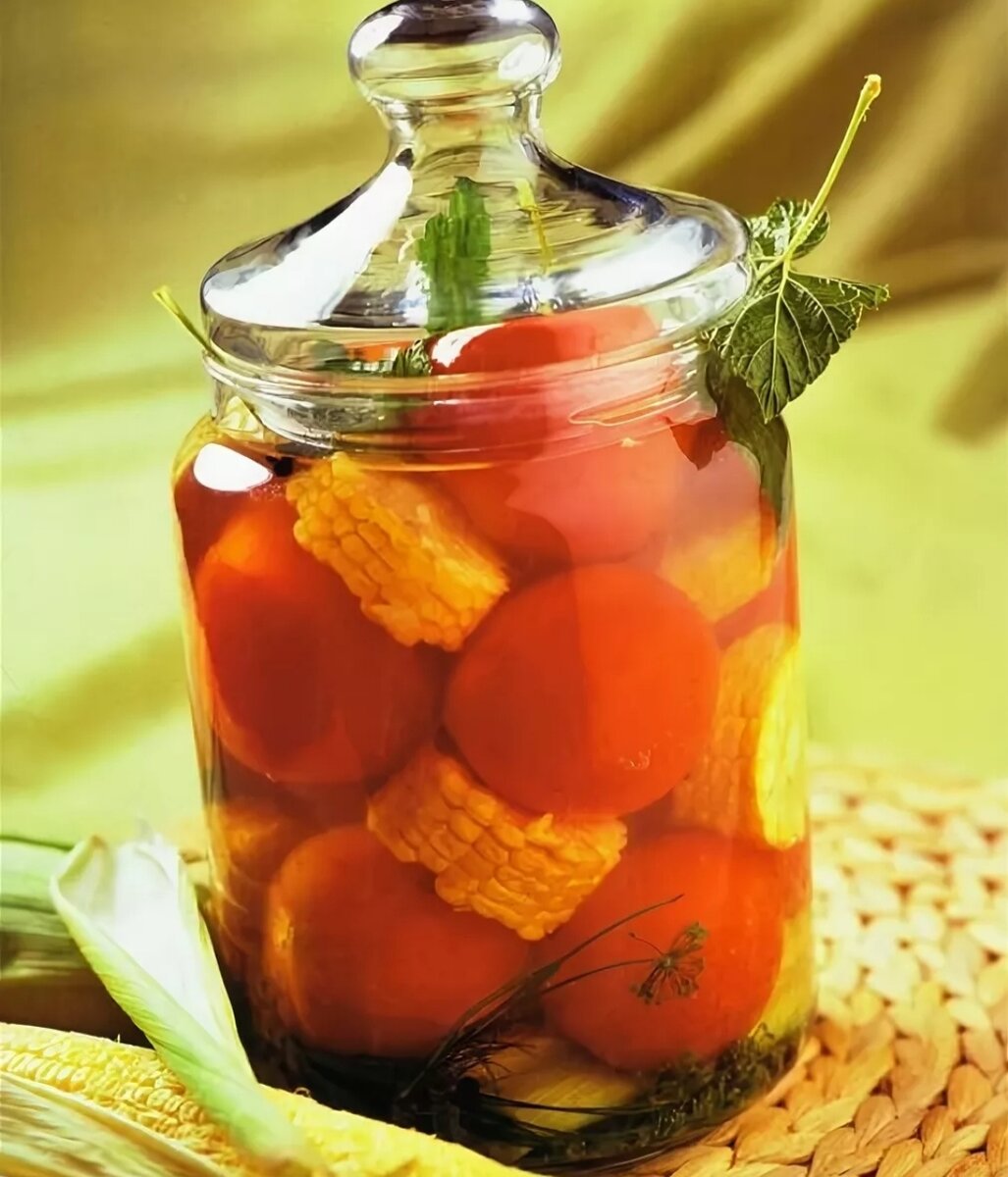 Если вам надоели просто соленые помидоры, предлагаю вашему вниманию вкусный рецепт, консервированные помидоры с кукурузой. Кукурузу мы употребляли просто, как закуску. Ее вкус ничем не отличается от баночной, которую используем в салатах.