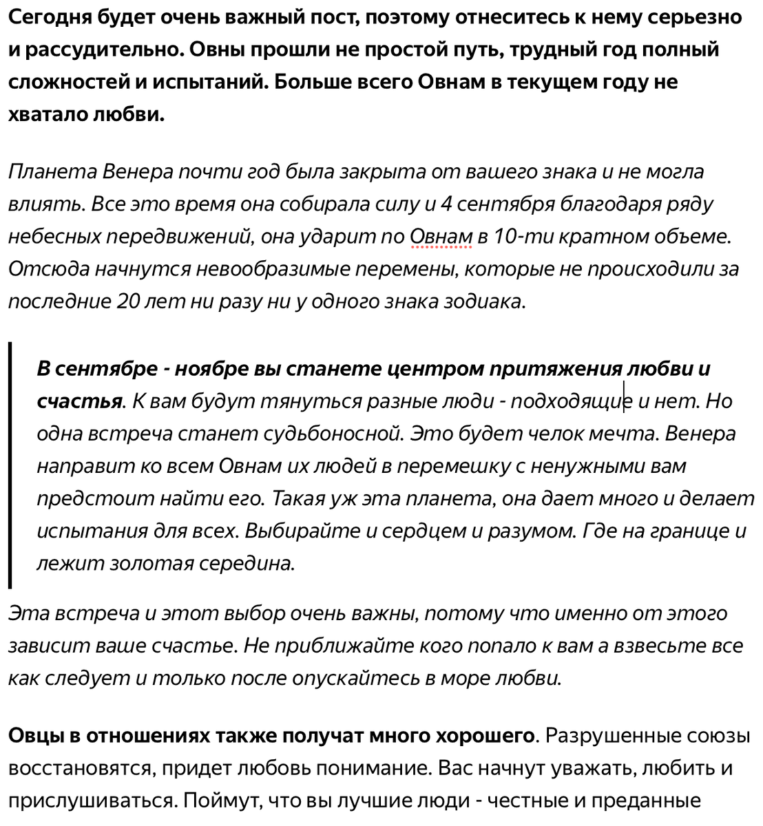 Овны - тот знак, который больше всего ждал перемен. День за днем тянулось время последний год. Вы сильно устали, были измотаны, не хватало сил, а проблемы лились одна на другую. Звезды бли на стороне других знаков, но никак не на вашей. С первых дней сентября, у вас начнется время перемен. Пусть перемены начнутся с не материального, но поверьте, оно того стоит. Вы вступаете в потрясающее время, которое не забудете никогда. Обо всем этом и будет моря статья: Внимание Овны Специально для вас, я опубликовал по ссылке в комментариях онлайн гадание на Таро на ближайшее будущее: Приступить к гаданию на будущее