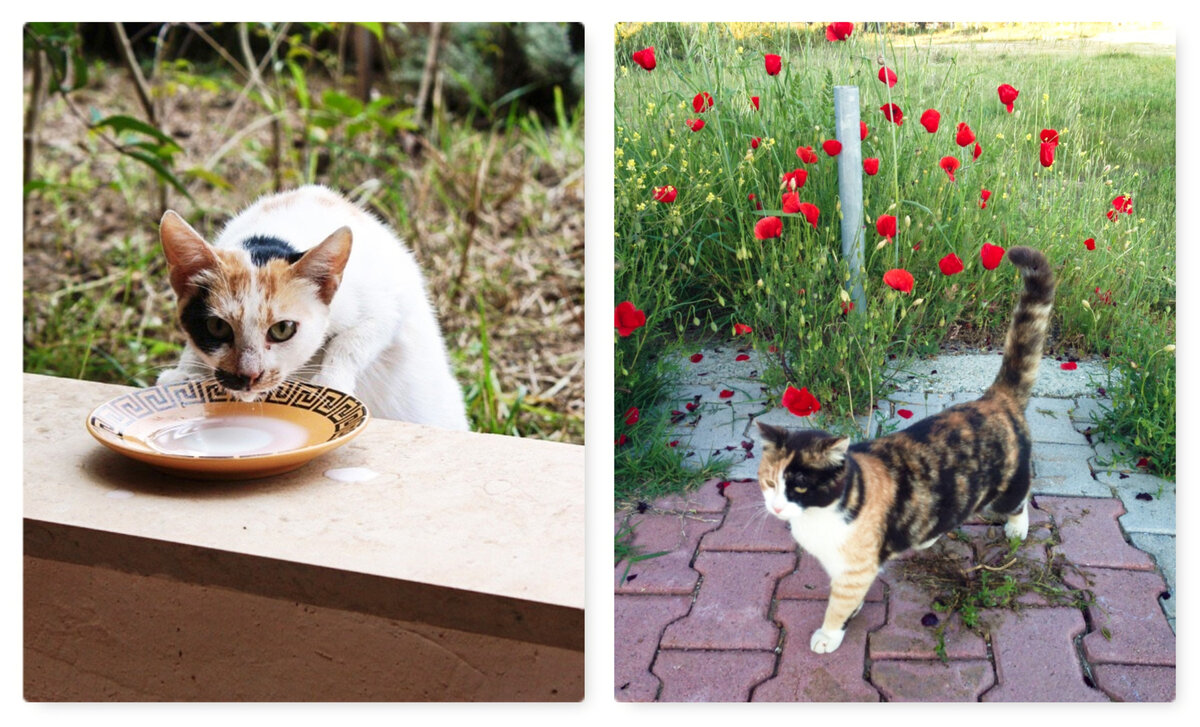Практически везде вы увидите стоящие на улицах кормушки и чашки с водой, постоянно наполняемые сердобольными греками. И, конечно, обитающую рядом пушистую общину, проводящую время в праздном ничегонеделаньи от кормежки до кормежки.