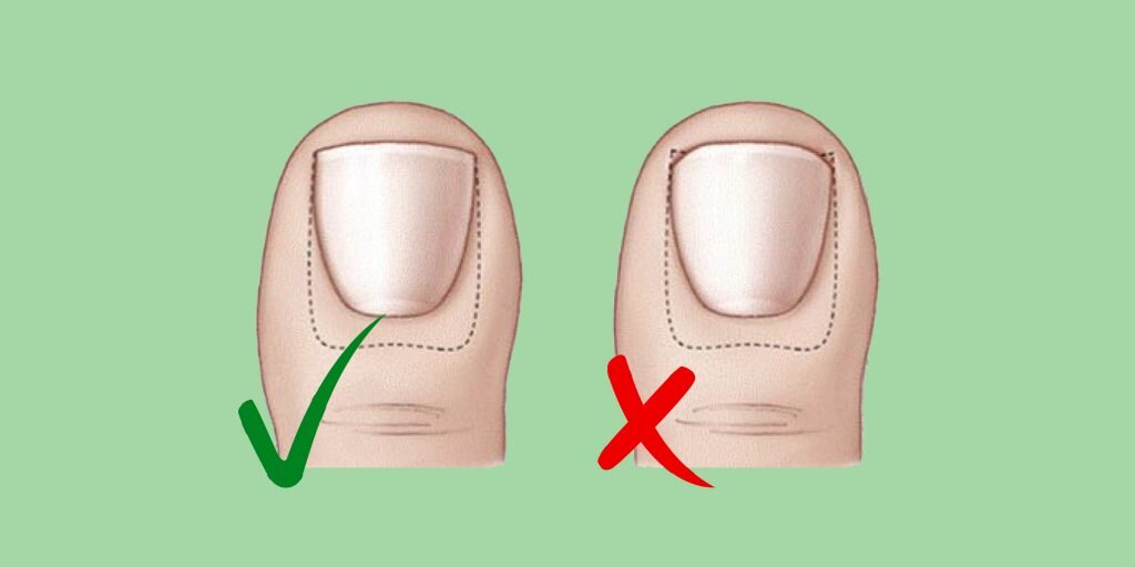 - Неправильное подрезание ногтя: его нужно обрезать прямо над ногтевым ложем. Если срезать слишком коротко, вздутые ткани могут привести к воспалению.