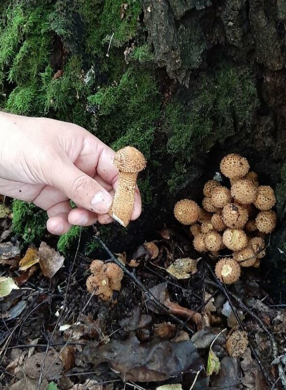 По лесу было много несъедобных грибов, например ложных опят и других схожих с ними.