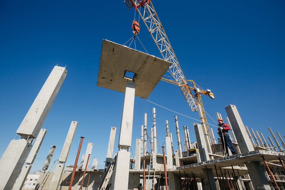 5. Это как продвинутый конструктор Лего для больших дядей. Я впервые снимал здание, построенное по технологии «Система КУБ 2,5». Это система сборного безригельного каркаса из вертикальных колонн и плоских панелей перекрытия. Плиты перекрытия выполняют роль ригелей — горизонтальных опорных элементов, к которым пристраивается несущая часть конструкции, которая состоит из вертикальных многоярусных колонн без выступающих частей.