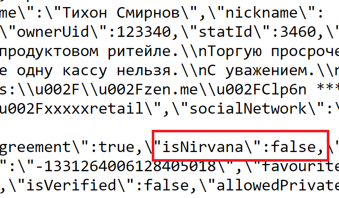 Внимание! На 2025 года информация в статье устарела. Нирваны уже нет, метка взрослого контента убрана из кода Дзена. Смотрите свежие публикации на канале о том, что творится на платформе :) Конец внимания. Похоже, система оповещений о нарушениях всё-таки существует. Когда её доведут до ума неизвестно, но уже сейчас кое-что доступно. Правда, весьма костыльным способом. В коде статей Дзена есть три параметра: Все параметры имеют два значения — true (истина) и false (ложь). Да или нет. С первым параметром всё просто — isNirvana показывает статус канала и его статей: true — статью написал «нирванист», false — статью написал простой автор. Кто в «Нирване», у того true, у остальных — false. Несовпадений не нашёл. Слышал о том, что Тихона Смирнова выгнали из «Нирваны». Судя по метке это так. По поводу двух других параметров всё неоднозначно. Метка ставится, если статью ограничили за «взрослый контент». Проверил на каналах из раздела «Для взрослых». У публикаций значение true. Зато на публикац