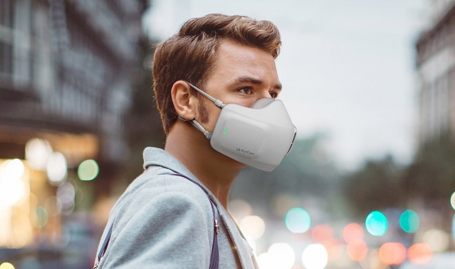 Компания LG разработала персональный очиститель воздуха в виде защитной маски. LG Electronics адаптировала свою технологию очистки воздуха в лицевую маску PuriCare, оснащённую источником питания, очистителем воздуха с двумя фильтрами H-13 HEPA, многоскоростными вентиляторами и УФ-стерилизующим корпусом. Носимый очиститель воздуха PuriCare крепится к лицу заушными ремнями, как обычная маска, от которой он отличается наличием аккумулятора емкостью 820 мАч. Он обеспечивает работу активной системы фильтрации и очистки воздуха в течении восьми часов в эконом-режиме и двух часов при работе на полную мощность. Пользователь дышит через два сменных фильтра HEPA с вентиляторами, при этом респираторный датчик контролирует скорость их вращения: при вдохе они ускоряются, а при выдохе замедляются. После использования устройство помещается в зарядный кейс с ультрафиолетовым излучателем, уничтожающим за время зарядки вредоносные микробы. Пока доподлинно неизвестно, насколько эффективна маска PuriCare