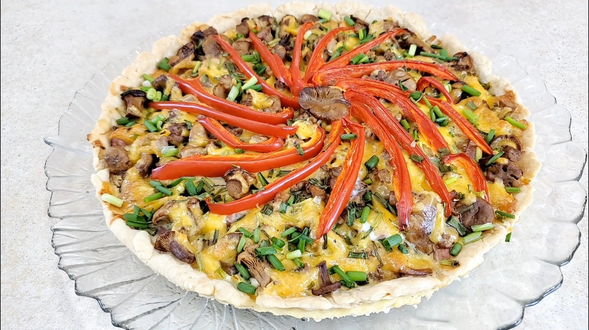 ПИРОГ С ГРИБАМИ - обычные продукты могут стать роскошным блюдом ИНГРЕДИЕНТЫ: ТЕСТО: просеянная мука 250гр. сливочный маргарин или масло 100 - 150 гр. холодная вода 3 ст. л. соль 1/4 ч. л. НАЧИНКА: готовое мясо 150 гр. любые свежие грибы 450 гр. маринованные грибы 200 гр. болгарский перец 100 гр. зеленый лук 30 гр. репчатый лук 100 гр. соль, перец по вкусу ЗАЛИВКА: сливки 15% 150 гр. любой твердый сыр 100 гр. соль, перец по вкусу
